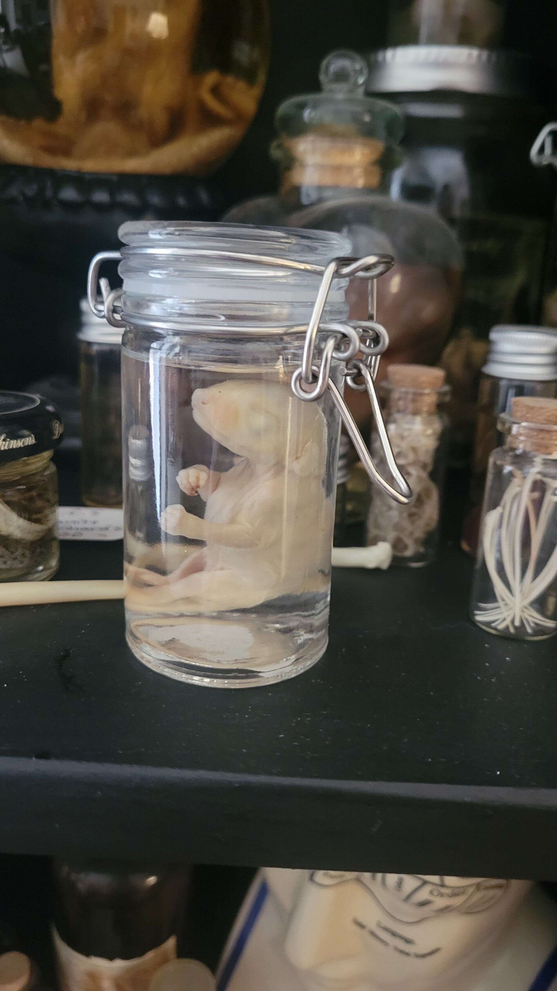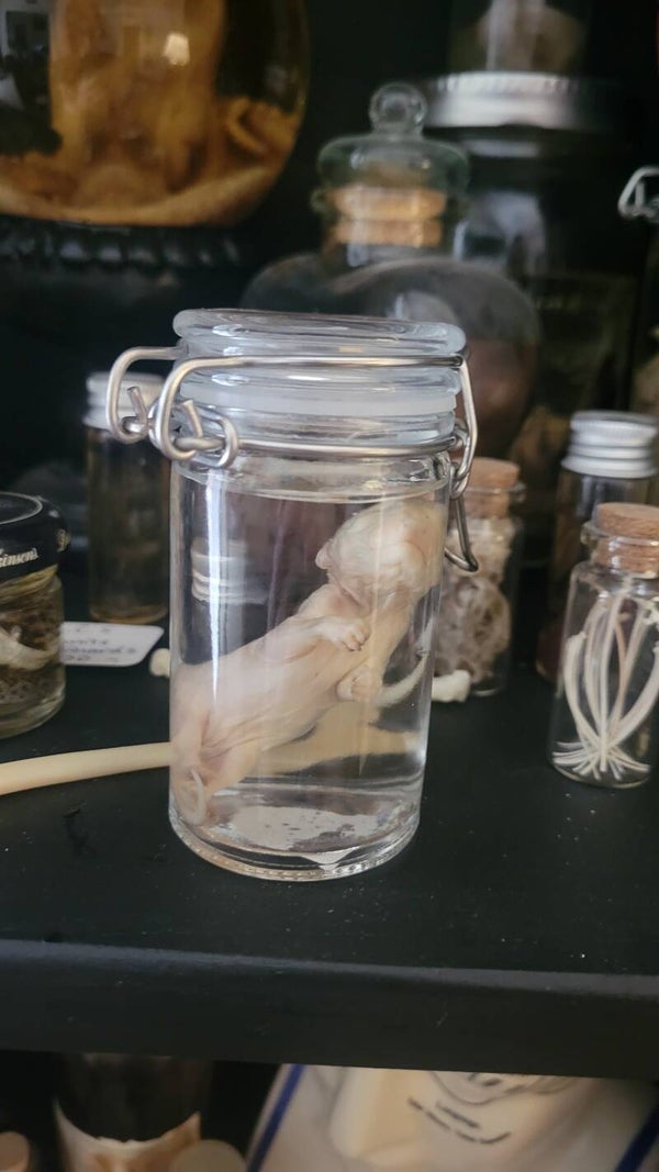 Ethically sourced fetal opossum. Sizes may vary. Will come with jar you will have to add liquid.