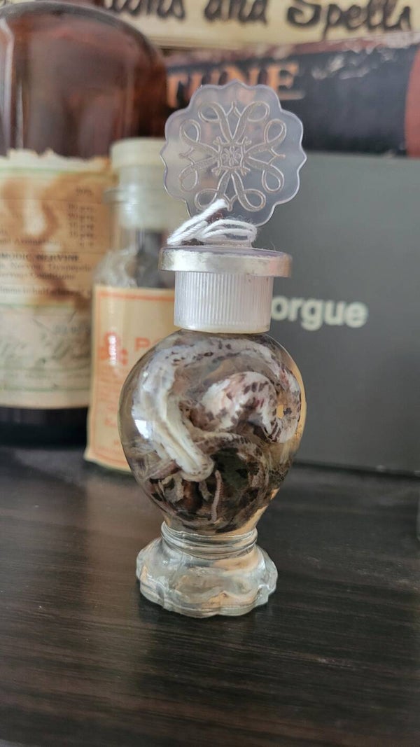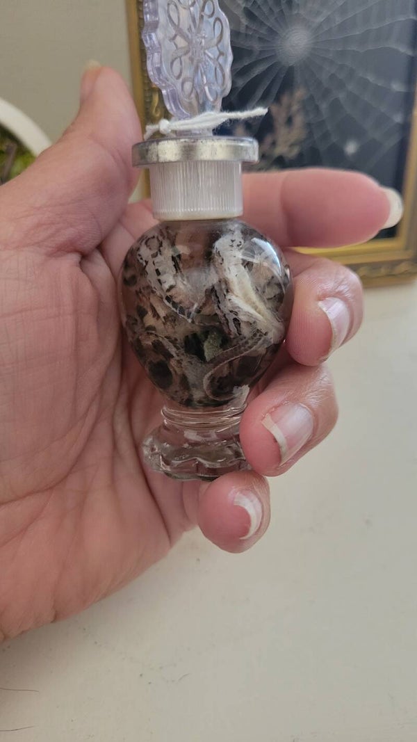1 ethically sourced snake in a perfume jar.